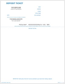 Make bank deposits and track your spending. With customizable deposit slips, deposit bags, and checkbook registers, you can easily monitor your credits and debits – and keep an eye on your budget. Explore our complete collection of deposit tickets and check registers to find the right option for your banking needs. Laser deposit slips are Peachtree or Quickbooks compatible. Easily customize your deposit slips online. Once you've completed your order, we’ll print your business deposit slips and ship them directly to your door.